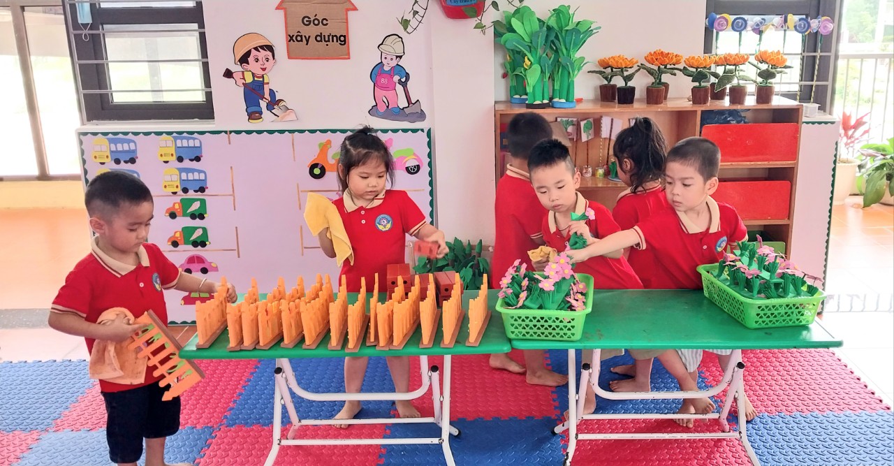 Ảnh trẻ sắp xếp đồ dùng đồ chơi