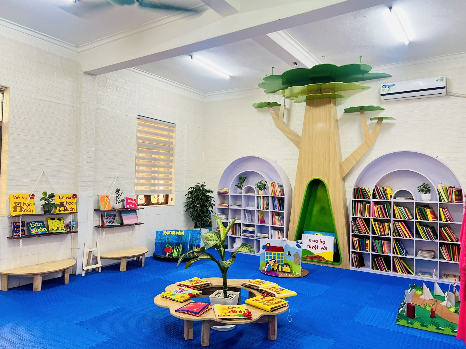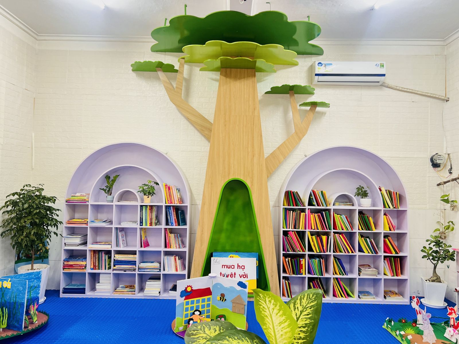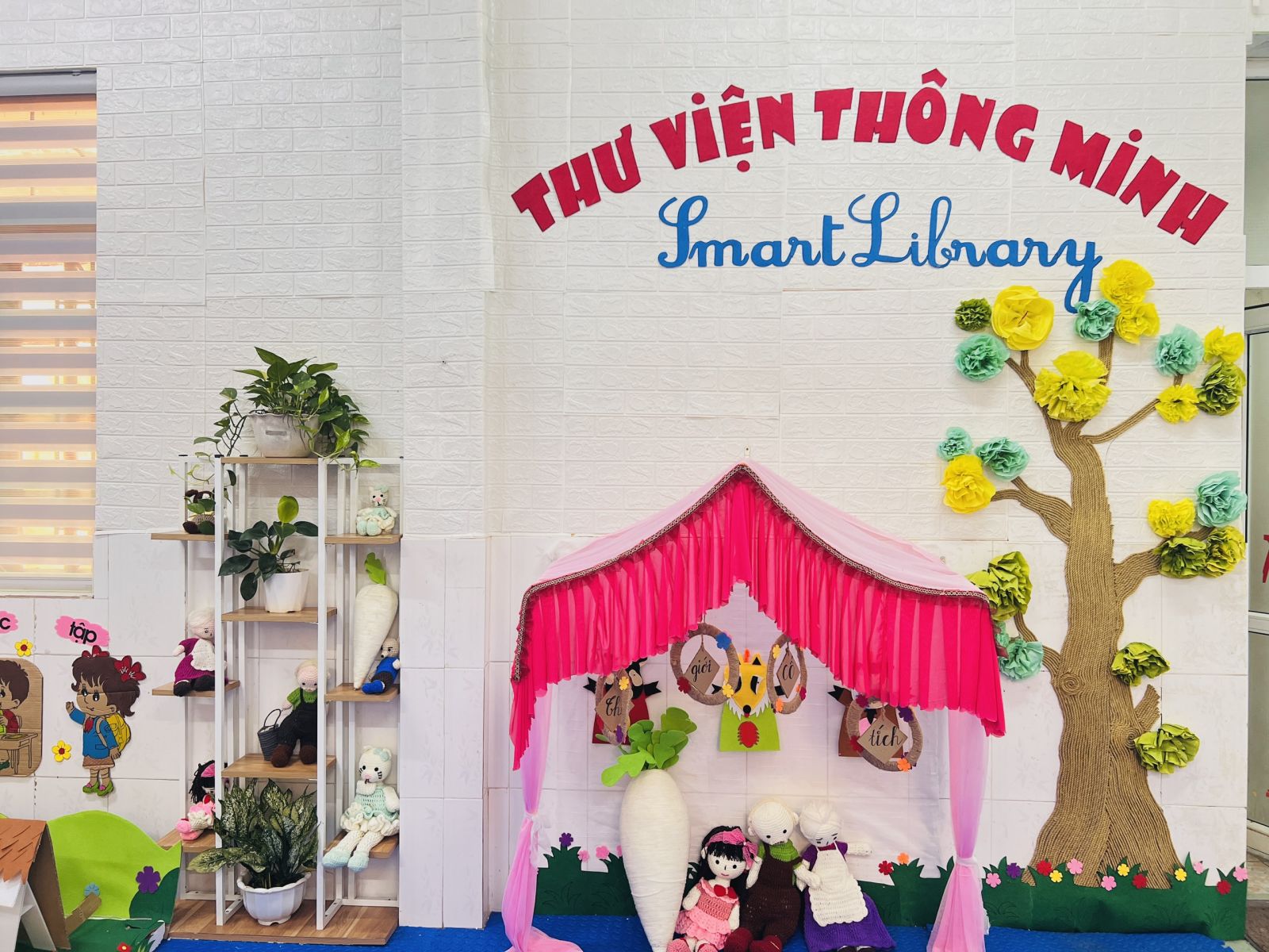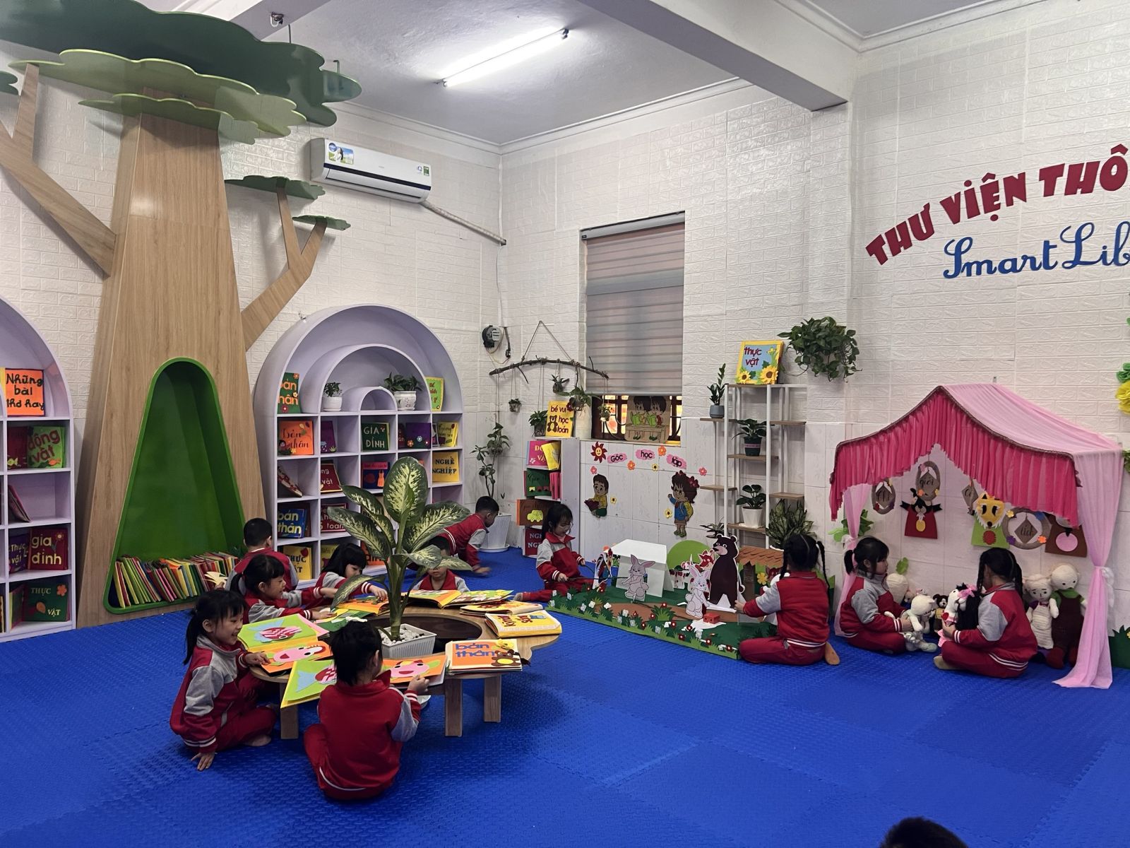 Từ đầu năm học 2023-2024 nhà trường đã xây dựng kế hoạch, thiết kế xây dựng thư viện nhà trường. Với sự tâm huyết của BGH nhà trường, các đồng chí giáo viên, nhân viên cùng với sự chung tay góp sức của các bậc phụ huynh cho đến nay nhà trường đã xây dựng hoàn thiện thư viện của nhà trường, một điểm đến hấp dẫn đối với trẻ.