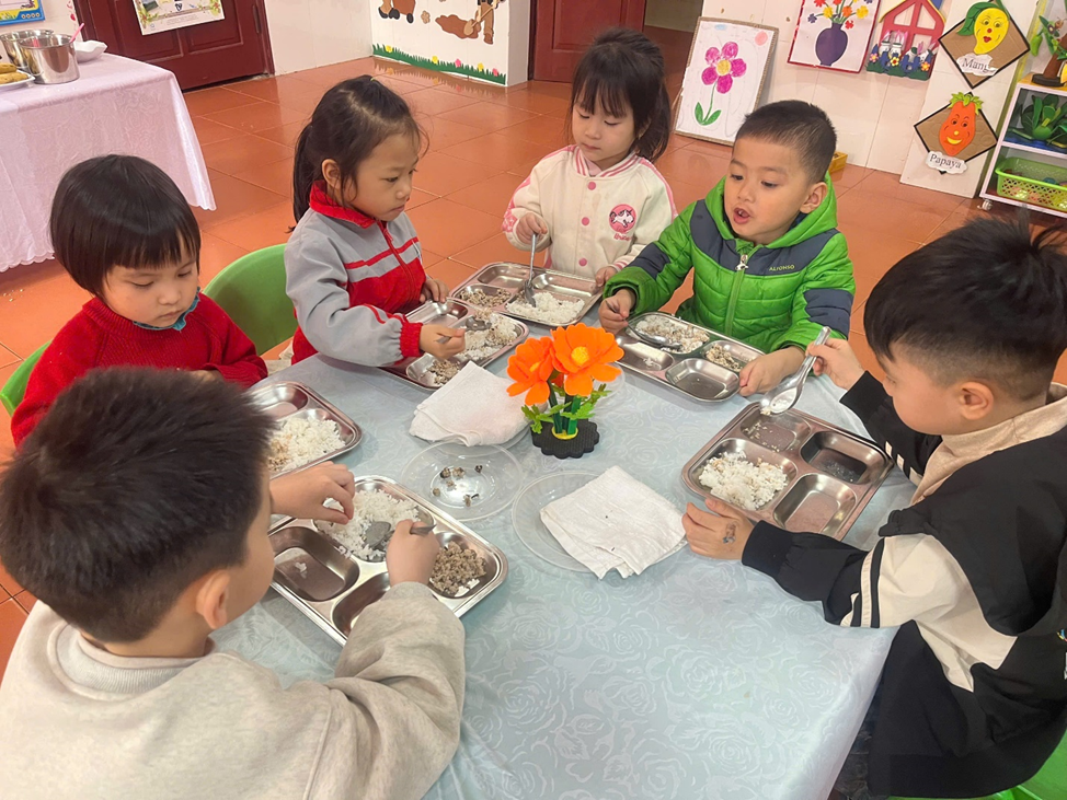 GIỜ ĂN TRƯA CHO TRẺ MẦM NON TẠI LỚP 4-5 TUỔI B5