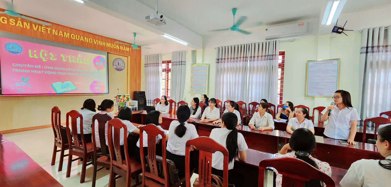 Tiếp đó, các đồng chí giáo viên đã tham gia chia sẻ, tập trung thảo luận về các giải pháp ứng dụng công nghệ thông tin vào hoạt động thư viện như: Công tác biên mục, tra cứu, liên thông chia sẻ tài nguyên thông tin, phục vụ mượn – trả, thống kê, tuyên tuyền văn hoá đọc và giới thiệu sách, công tác truyền thông - vận động,…