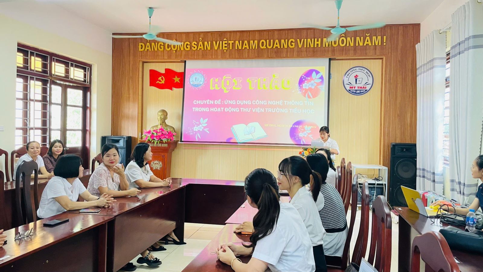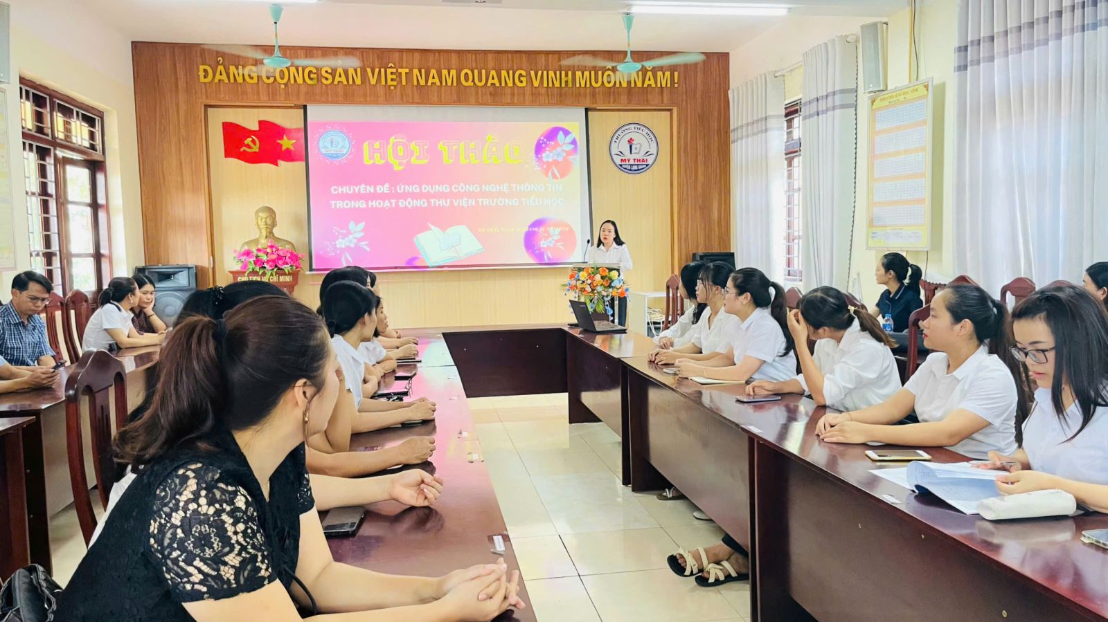 Tham dự Hội thảo có lãnh đạo nhà trường, toàn thể giáo viên, nhân viên Trường Tiểu học Mỹ Thái. Hội thảo đã diễn ra sôi nổi xoay quanh chủ đề: "Ứng dụng công nghệ thông tin trong hoạt động Thư viện trường tiểu học".
