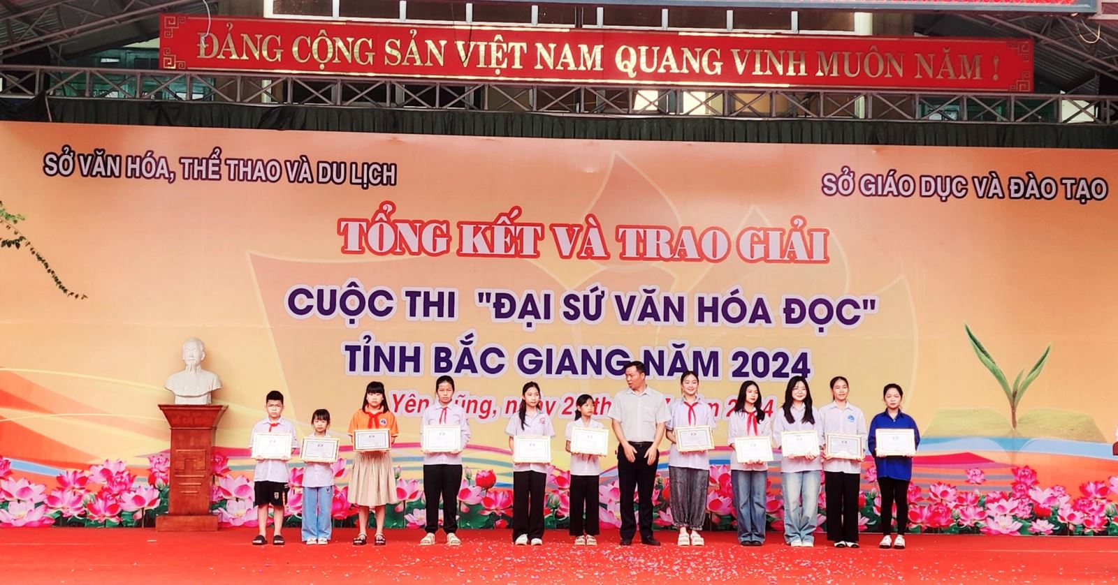 Năm 2024, toàn tỉnh có gần 105.000 bài dự thi, trong đó khối Tiểu học có 51.000 bài dự thi. Ban Tổ chức đã chấm, lựa chọn và trao giải cho 04 tập thể, 44 cá nhân (Khối tiểu học có 1 giải tập thể và 10 giải cá nhân). Danh hiệu Đại sứ văn hoá đọc xuất sắc thuộc về thí sinh Lưu Minh Anh - lớp 10A1 THPT Yên Dũng số 3.