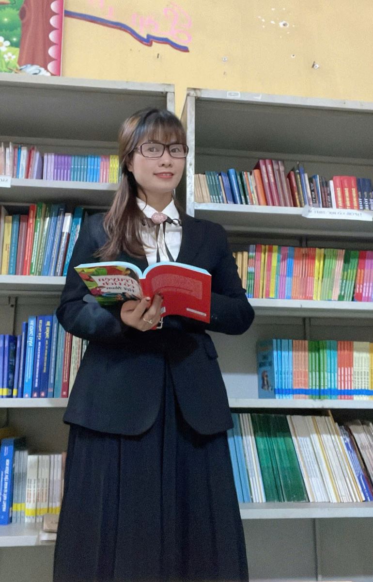 Chức vụ: Thư viện viên chính- Chịu trách nhiệm về việc tổ chức, quản lý sách, tài liệu và các hoạt động của thư viện